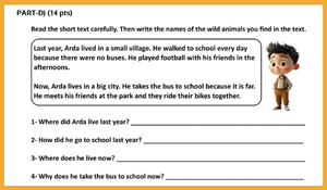 Bu sınav, 7. sınıf İngilizce dersi kazanımlarına göre hazırlanmış olup okuduğunu anlama ve yazma becerilerini ölçmeyi hedefleyen toplam 7 bölümden oluşmaktadır.