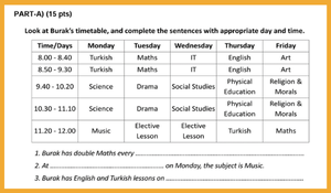 ENG.5.2.R3. Students are expected to be able to make meaning of / derive meaning from the current content about “classroom life with classroom rules and language; school subjects; timetables; classroom objects; days of the week; time” by reading it carefully.