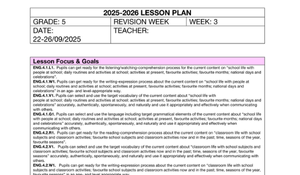 Kapsamlı Kazanımlar (Focus & Goals): Çerçeve yıllık plandaki revision haftası ile ilgili tüm beceri alanlarını kapsayan detaylı kazanım listesi. 🎯