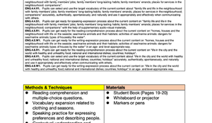 Çeşitli Yöntemler ve Materyaller (Methods & Techniques & Materials): Dinleme, okuma, kelime bilgisi, cümle tamamlama ve yeniden düzenleme gibi farklı öğrenme tekniklerini içeren, ders kitabı, ses kaydı, beyaz tahta gibi materyallerle desteklenmiş bir yapı. 📚