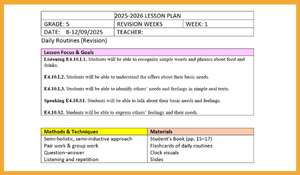 Bu dosya, Maarif Model 5. Sınıf İngilizce Ders Kitabına uygun olarak hazırlanmış günlük planların tamamını içermektedir.