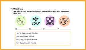 ENG.5.1.R4. Students are expected to be able to convey their knowledge, experiences, thoughts, and feelings related to the reading-comprehension process about the current content, “school life with people, places and rules at school; school clubs; countries; national days and celebrations” in relation to themselves or others, both individually and/or with others. 1