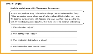 5. Sınıf Maarif Model İngilizce 1. Dönem 1. Reading-Writing Sınavı MEB tarafından yayınlanan 5. senaryoya göre yapılmıştır.