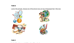 Görev B: Okul Kulüpleri ve İlgi Alanları: Dört farklı okul kulübünün (Spor kulübü, Çevre kulübü, Müzik kulübü, Resim kulübü) görselleri verilerek, öğrencilerden bu kulüplerde insanların neler yapmaktan hoşlandıklarını İngilizce ifade etmeleri beklenir. Bu görev, kulüp faaliyetleri hakkında kelime ve cümle yapılarını kullanma becerisini ölçer.