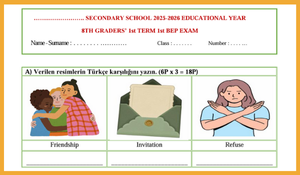 2025-2026 8. Sınıf İngilizce 1. Dönem 1. BEP Yazılısı
