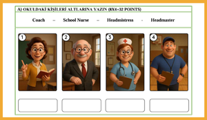Basit düzeyde tutulmuş ve 1. ünitede bulunan kelimelerden oluşturulmuştur.