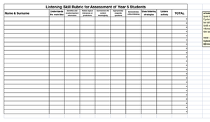 Her rubrik 25 kişilik bir sınıfa göre düzenlenmiştir.