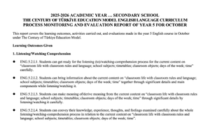 5. Sınıf Maarif Model İngilizce Ekim Ayı Raporu
