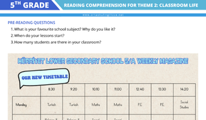 5. Sınıf Maarif Model İngilizce Reading Comprehension 2 for Theme 2: Classroom Life