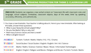 5. Sınıf Maarif Model İngilizce Speaking Production for Theme 2: Classroom Life