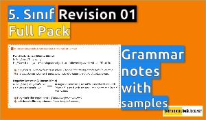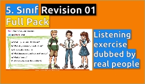 Merhabalar arkadaşlar, sizler için 5. sınıf Revision 01 ünitesinde kullanmanız için, tüm becerileri kapsayan bir dosya hazırladık. İçerisinde, görsellerle desteklenmiş kelime bilgisi, ünite içerisindeki yapıları öğrencilerinize hatırlatmanız için grammar anlatımları, gerçek kişiler tarafından seslendirilmiş dinleme dosyası ve daha birçok etkinlik bulunmaktadır. Dinleme dosyası mp3 formatında, çalışma kağıdı ise pdf formatında zip dosyasının içerisindedir. Hepinize iyi çalışmalar.