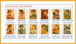 School Clubs (Okul kulüpleri): art club, drama club, chess club, music club vb.